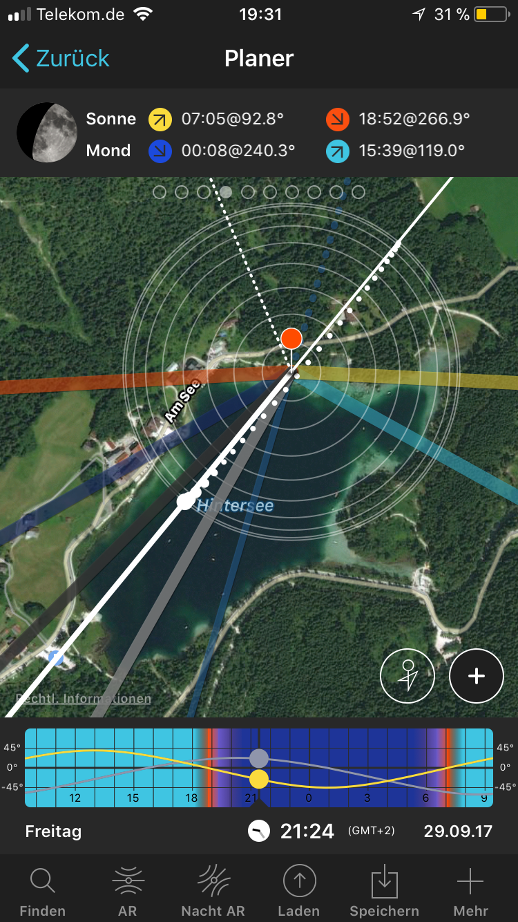 My PhotoPills planning for shooting Hintersee